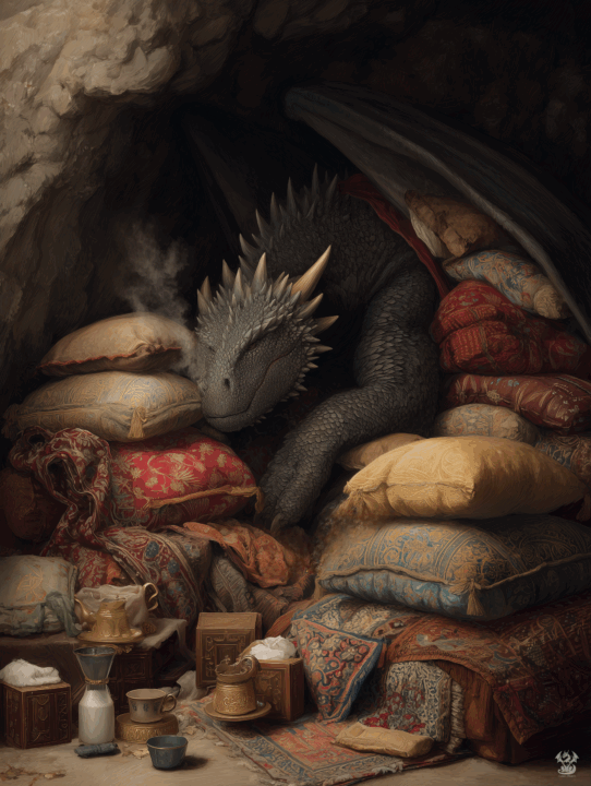 The local villagers adored him. They’d leave offerings of soft pillows, warm milk, and bedtime stories at the edge of his cave. In return, Drowsel kept their valley safe—not with fierce battles, but with strategic inconvenience. Bandits who tried to sneak in found themselves lulled to sleep by his enchanted snoring, which echoed like a lullaby across the vale.