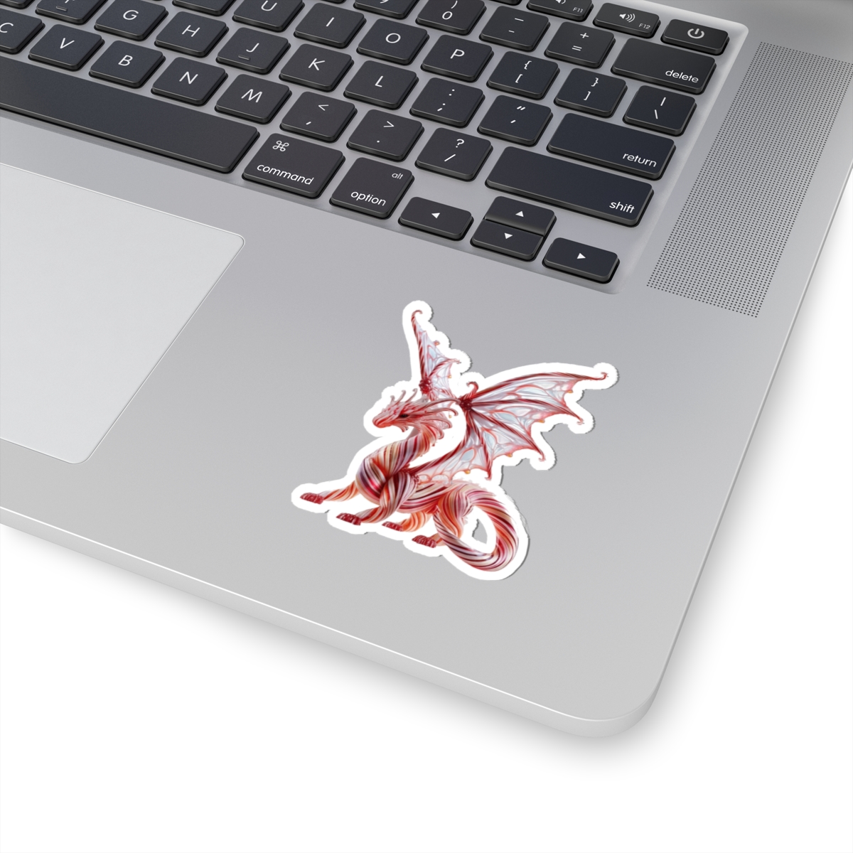 A dreamy dragon Christmas sticker that brings a touch of gentle fantasy to your everyday spaces. Rendered in swirling candy-cane reds and soft creams, the intricate lines and translucent wings feel like a whisper of movement — like a small guardian settled on your laptop, notebook, or window. The glossy finish catches light and enhances the vibrant inks, while the kiss-cut shape follows the dragon’s silhouette for a clean, finished look. For collectors and fantasy lovers who enjoy subtle, artful accents, this sticker adds personality without overwhelming the scene.