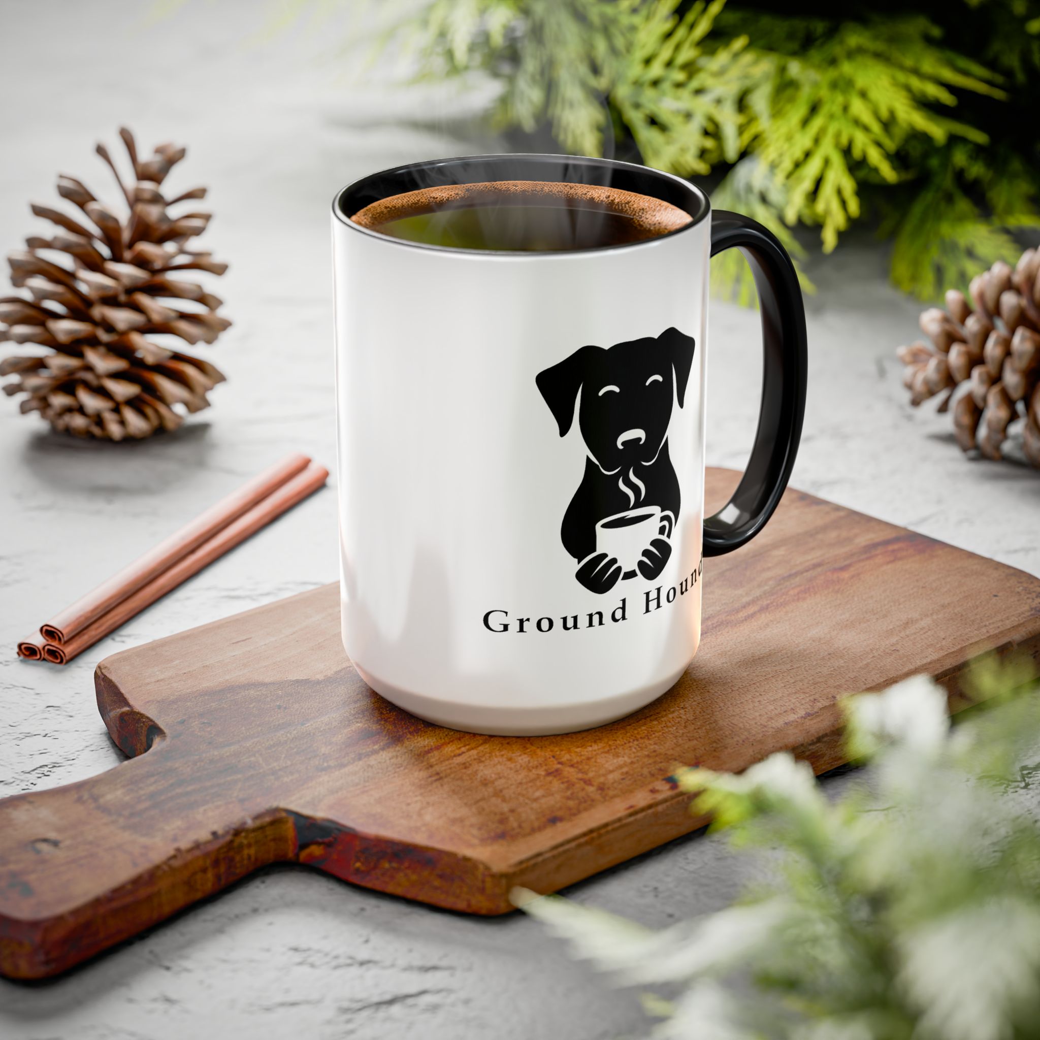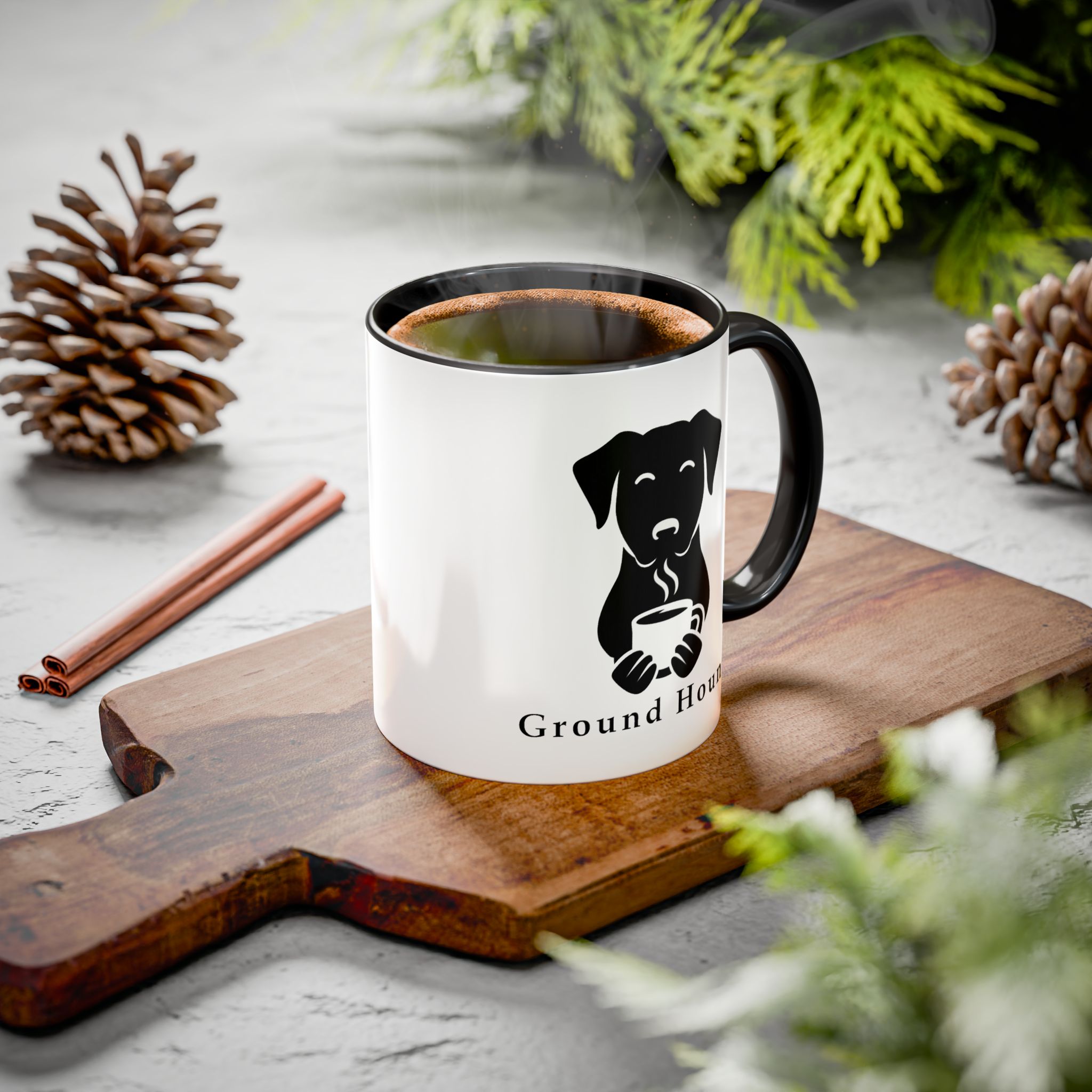 Warm and simple, this ceramic mug brings a quiet moment to your daily routine. A minimalist black dog illustration cradles a steaming cup on a clean white canvas, while a colored interior and handle add a cheerful, personal touch. It feels like a slow morning walk with a loyal companion — steady, familiar, and quietly joyful. The glossy finish makes the artwork pop and the comfortable C-shaped handle keeps your grip relaxed during long sips. Bring this mug to your kitchen counter, home office, or cabin shelf to start the day with calm and a small reminder of loyal company.